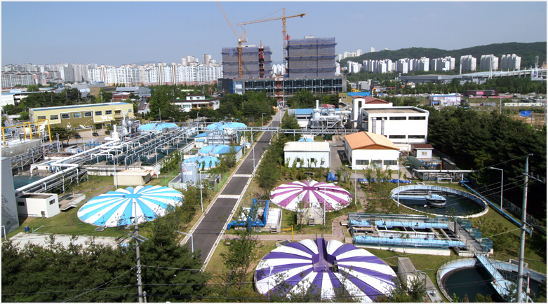 · 중앙제어실, 실험실, 수배전실 (4,950KW) · 생물학적 처리시설 → 포기조, 침전지, 분리막 · 화 학 적 처리시설 → 응집침전지, 응집반응조 · 슬러지 믹싱탱크 1기, 탈수시설 5기, 사여과기 3기, 악취제거시설 3기 · TMS (측정장비 : COD, SS, T-N, T-P) |